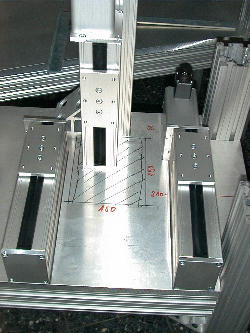Die Nadeln werden pneumatisch betätigt und mit Hilfe von 2 Stck. Schrittmotoren positioniert.