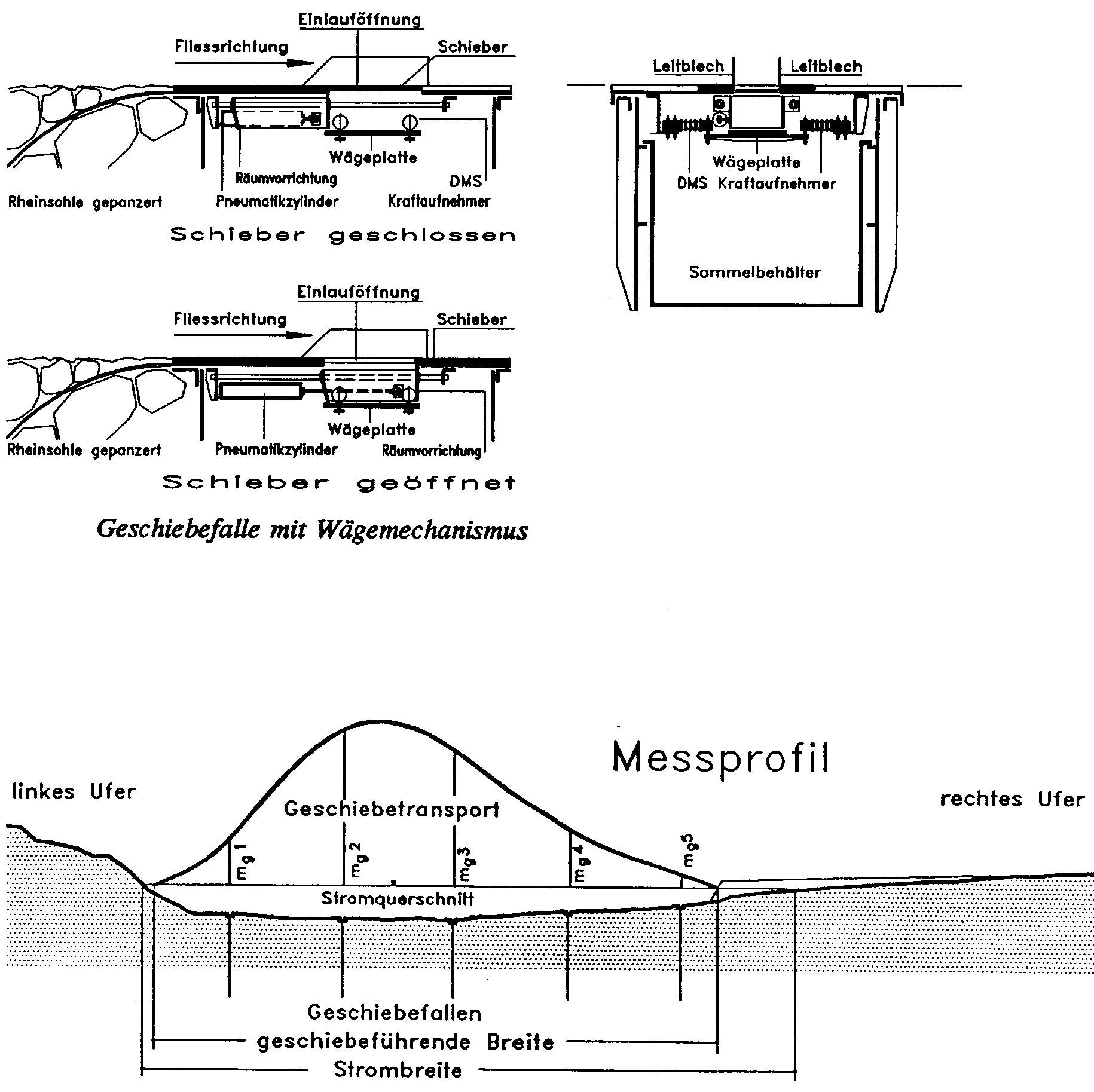 Geschiebemessungen durch den Einbau speziell entwickelter Waagen in die Rheinsohle.