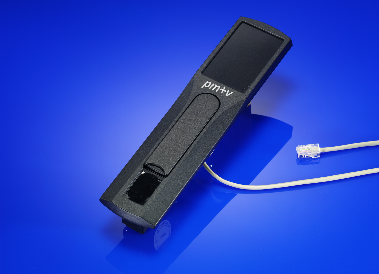 Es sind 2 Geräte vorhanden, die jeweils mit der rechten oder linken Hand betätigt werden. Die Messdaten werden mittels USB-Port an einen PC übertragen.