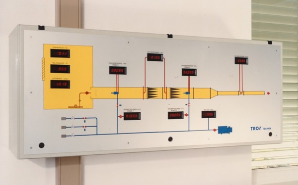 Bau eines Demonstrationsfilterprüfstandes im Entwicklungslabor. Umfangreiche Visualisierung mit Darstellung der Prozessabläufe und Anzeige der Prozessparameter.